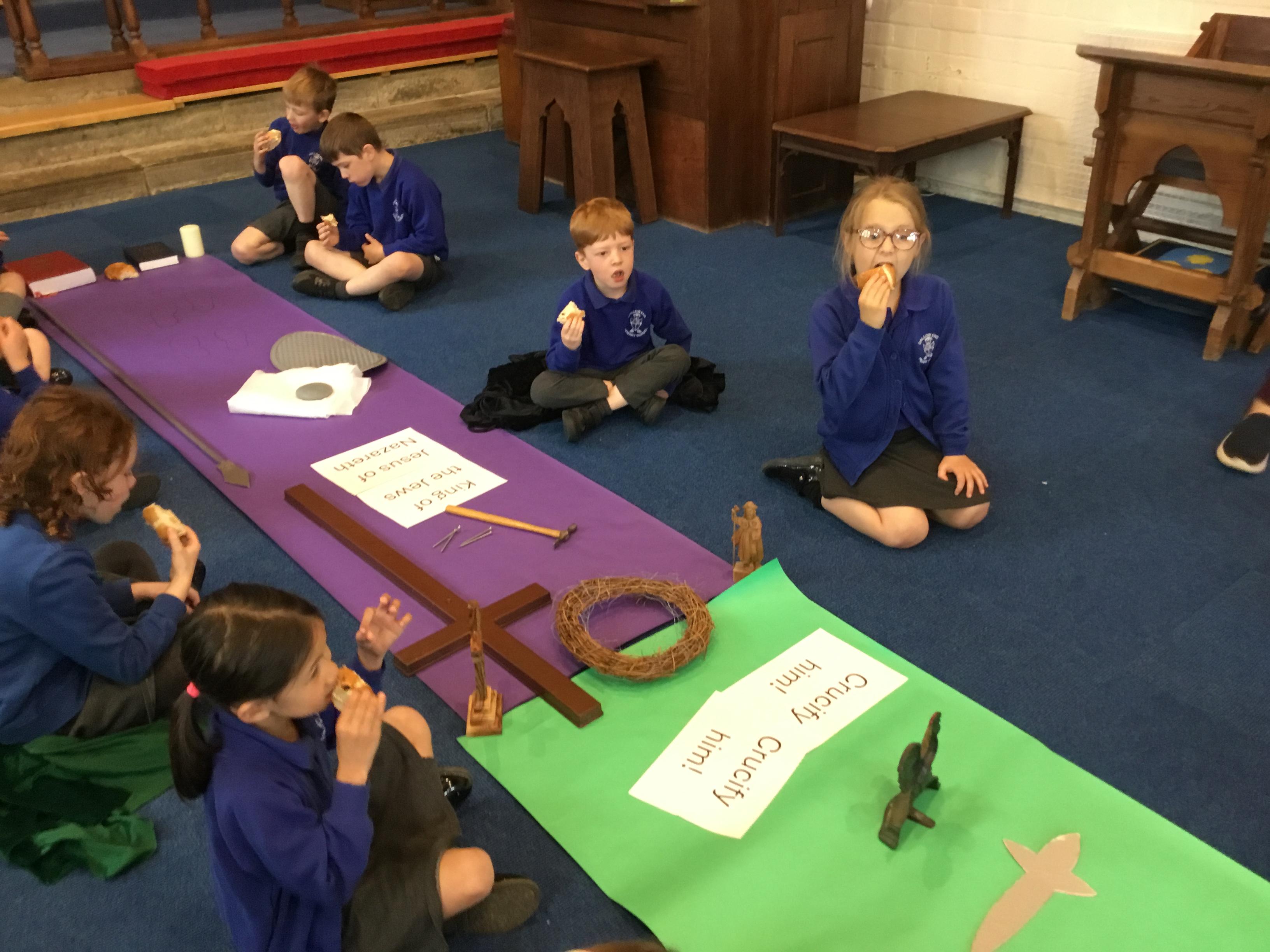 We spent the morning learning all about Jesus' last week. Vicky and Kay prepared a living tableau of The Last Supper and the children relished this interactive opportunity.