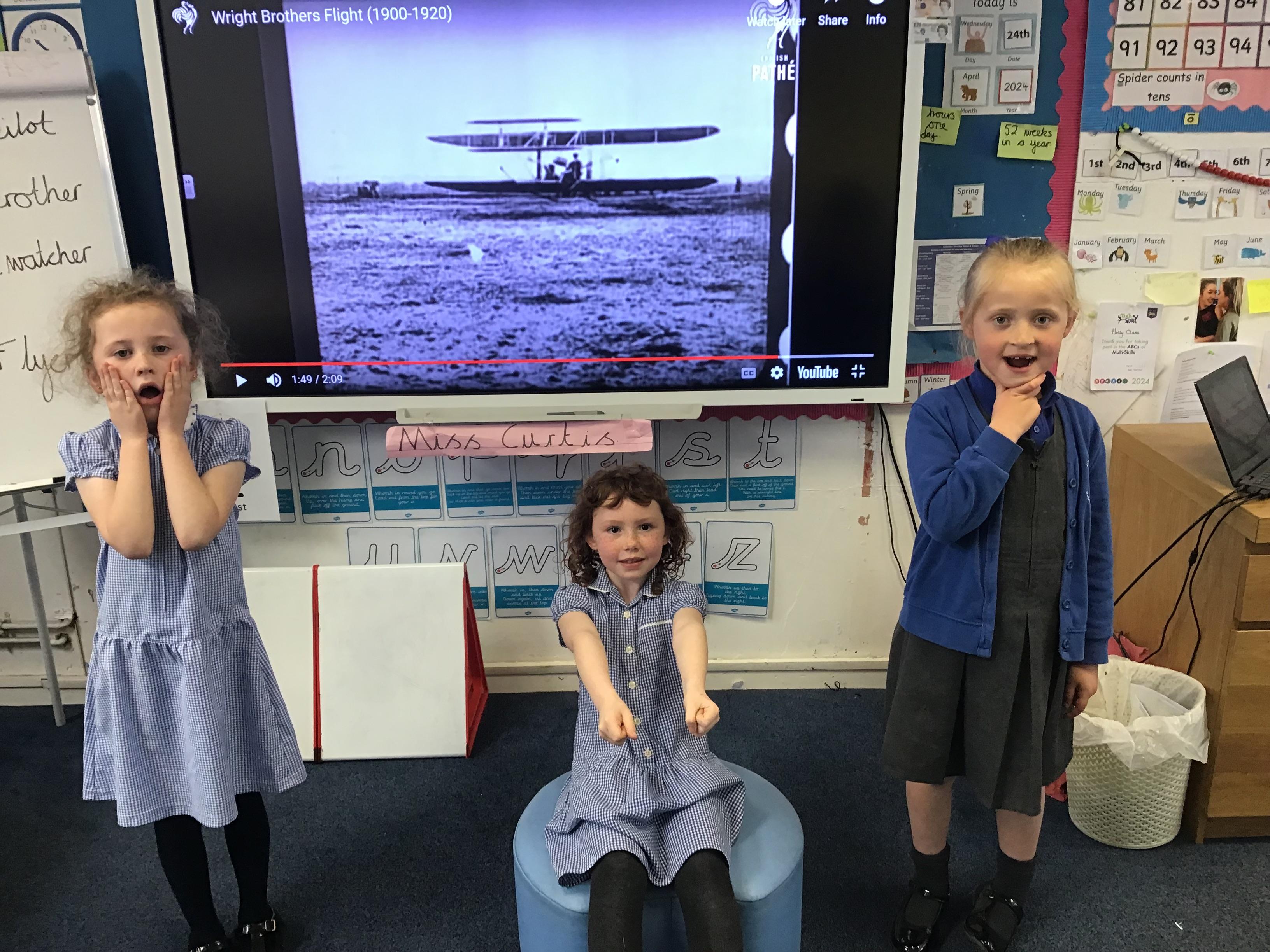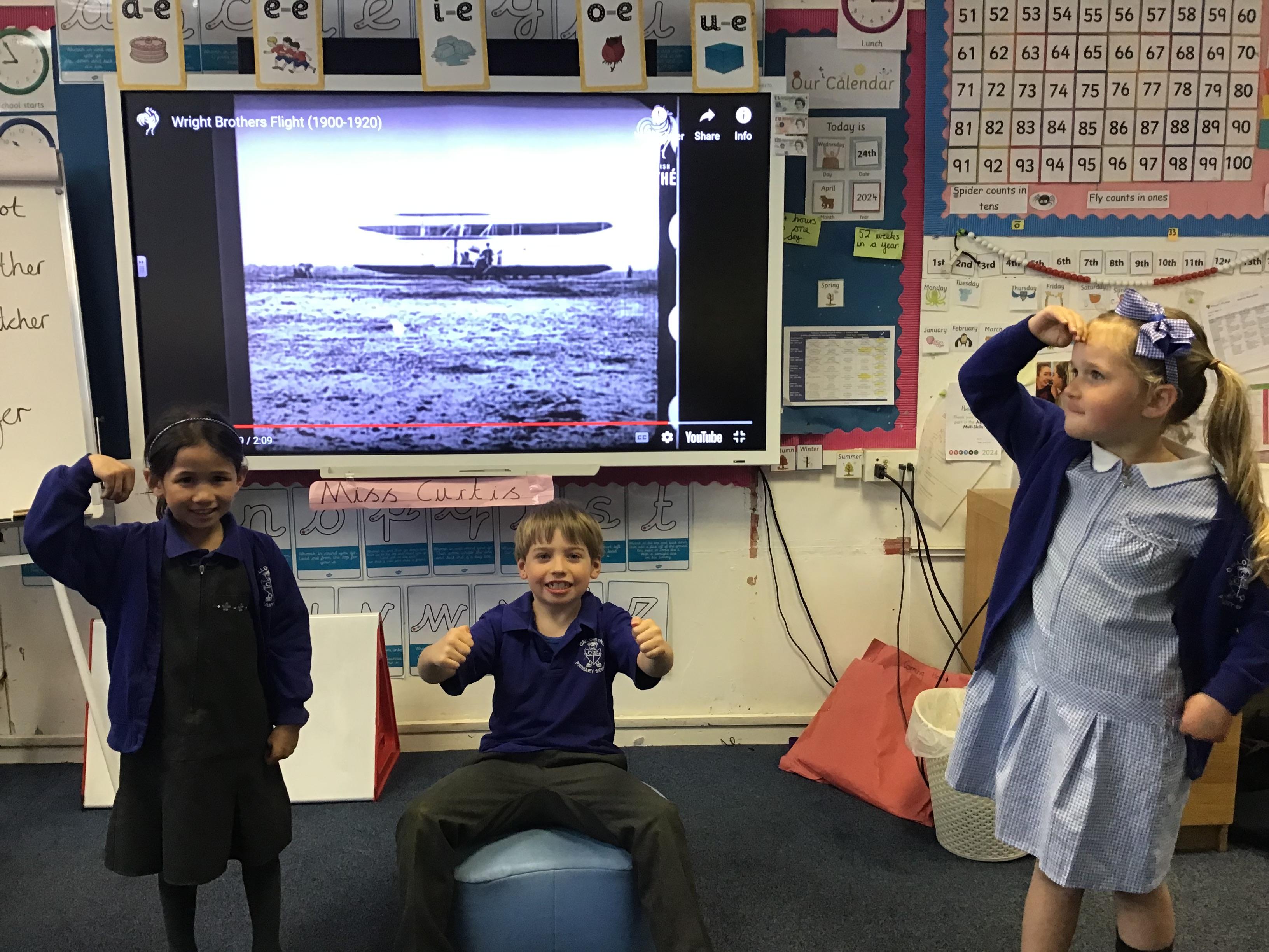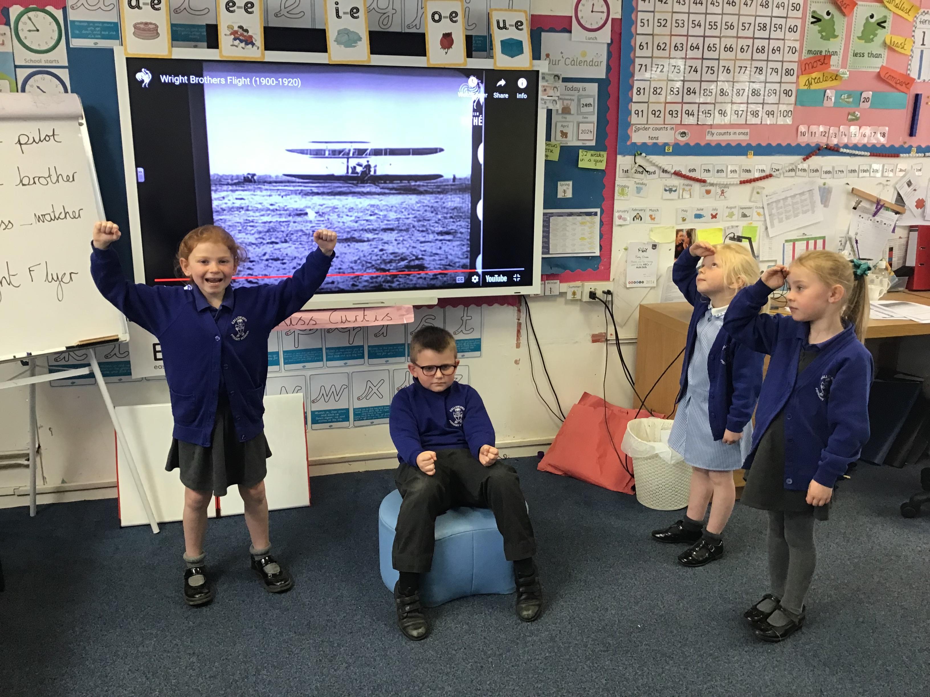24.04.24 Today we looked at significant people in history and learnt all about the Wright Brothers and their building and flying of the world's first successful airplane the , 'Wright Flyer' in 1903. We freeze framed the first flight reactions of Orville and Wilbur Wright along with an eyewitness.