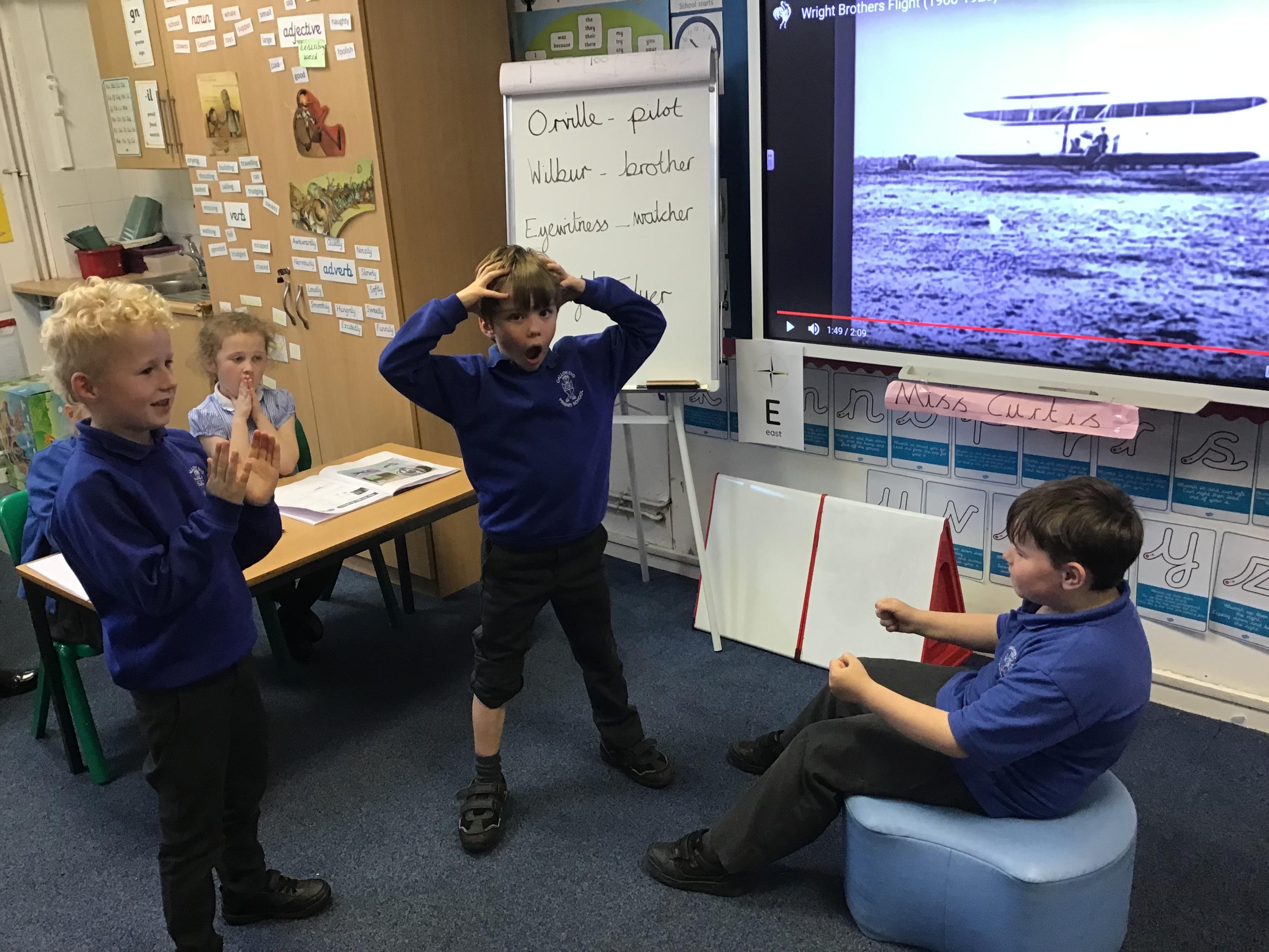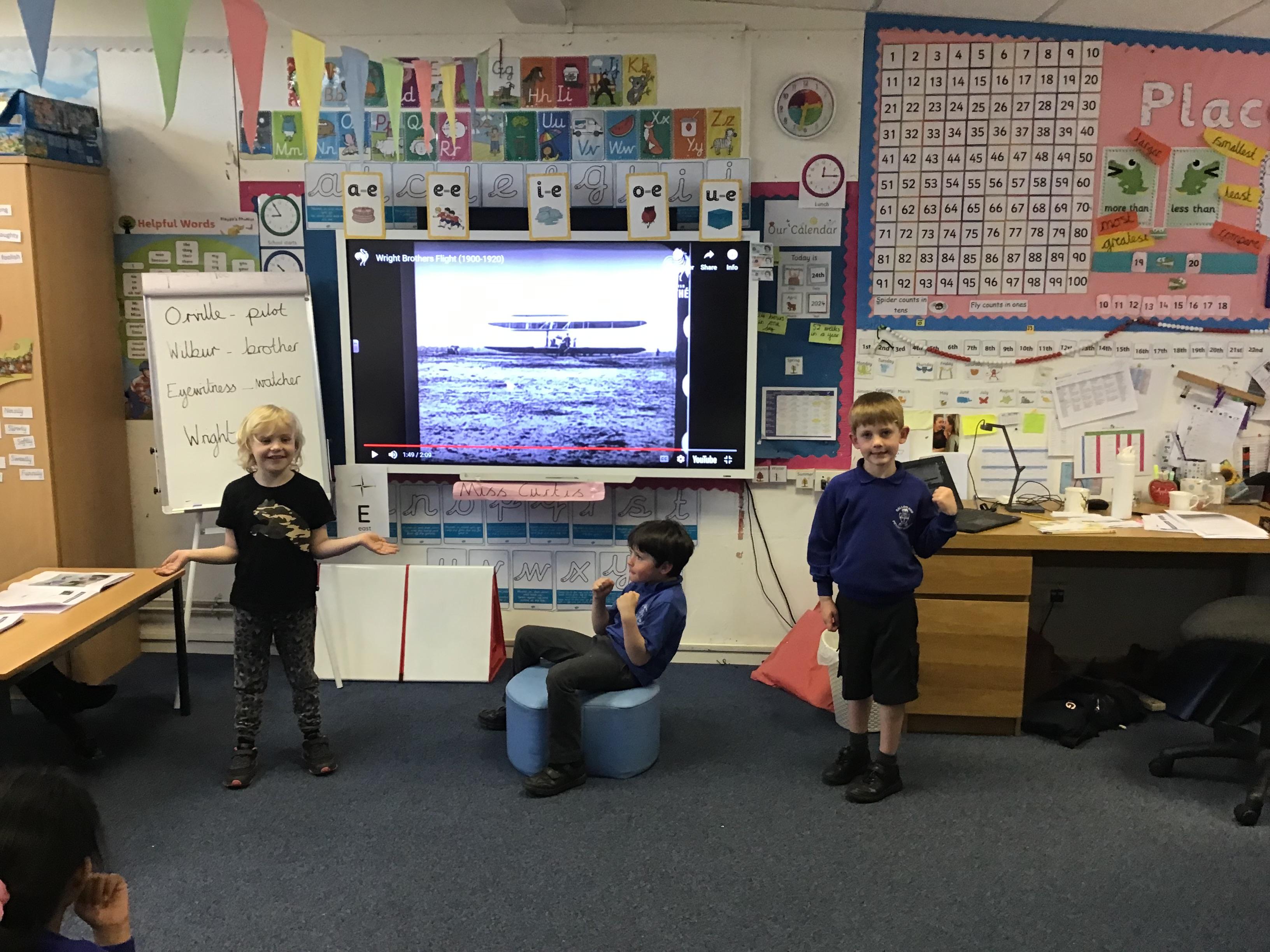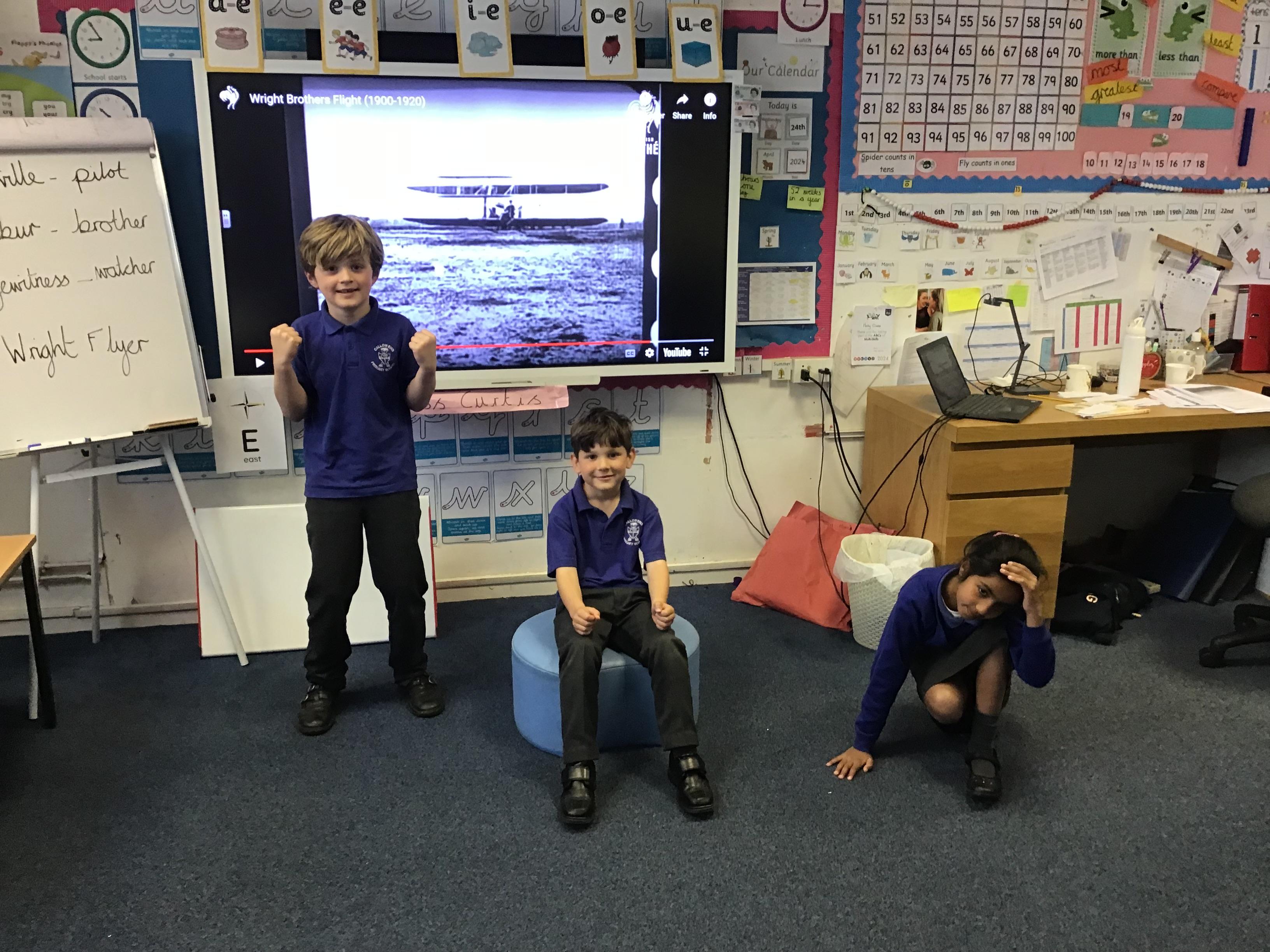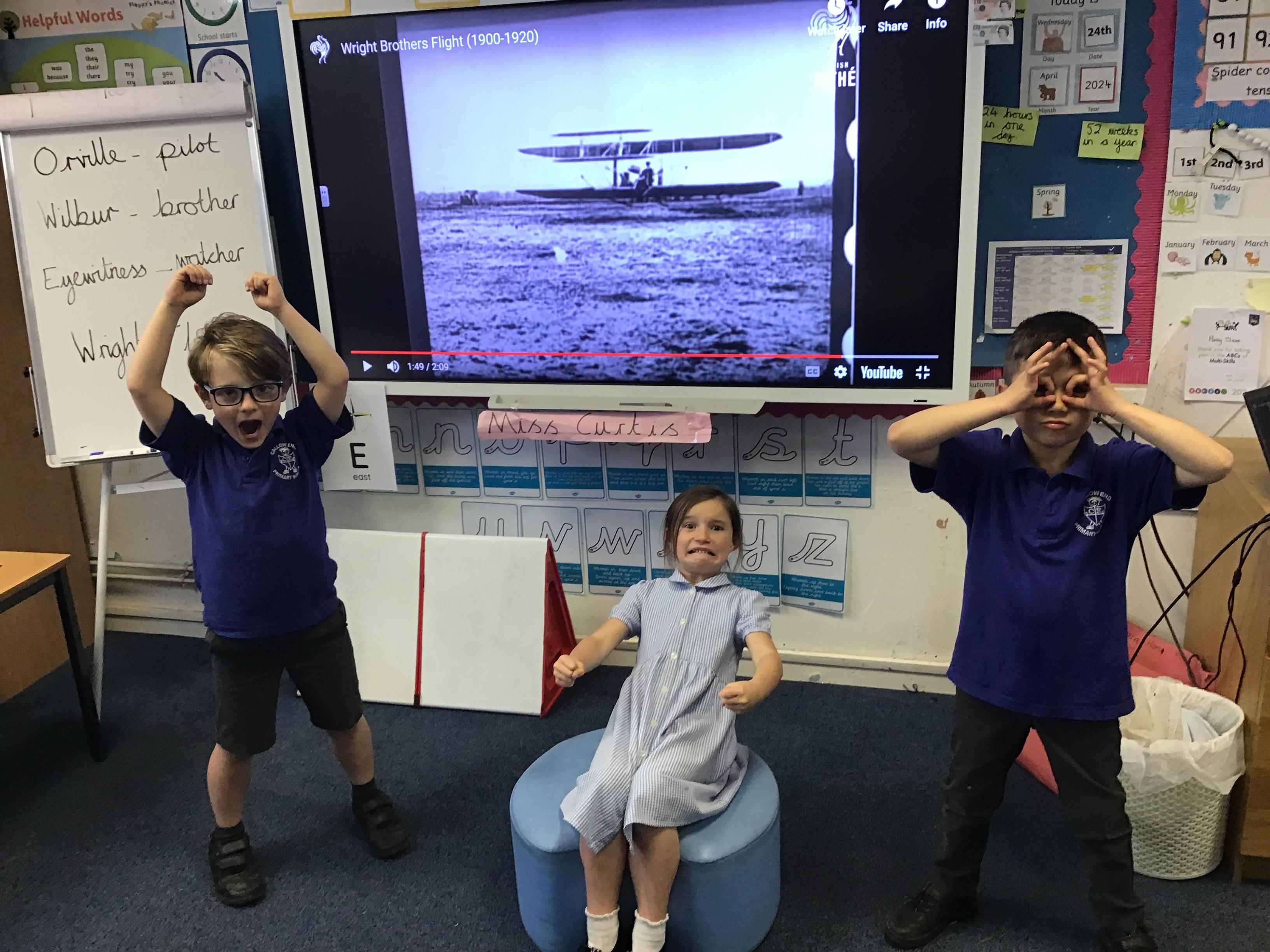 24.04.24 Today we looked at significant people in history and learnt all about the Wright Brothers and their building and flying of the world's first successful airplane the , 'Wright Flyer' in 1903. We freeze framed the first flight reactions of Orville and Wilbur Wright along with an eyewitness.