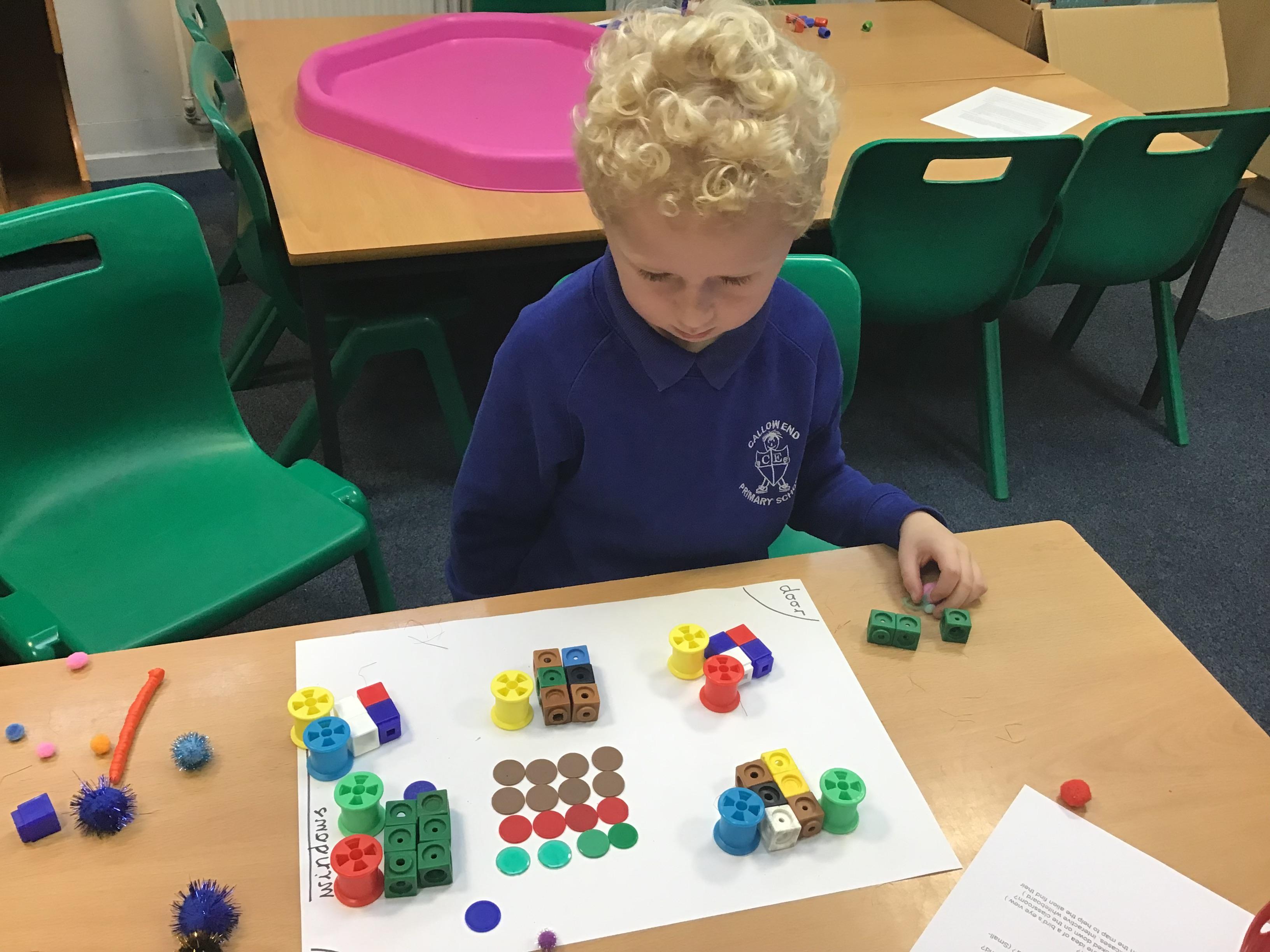 Geography topic- what is it like here? Creating maps of our classroom using objects to make a Messy map'.